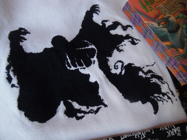 There are other patterns quite like this one that I kind of prefer to this piece now, but I'm still really pleased with how this came out. It's stitched entirely with 3 strands of 939, so it's an inky black-blue rather than just plain black, and I love it.